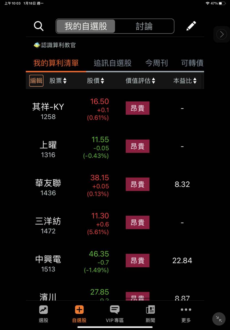 10:03 澄子 教官,再請問app裡的自選股,沒有股價位階欄?