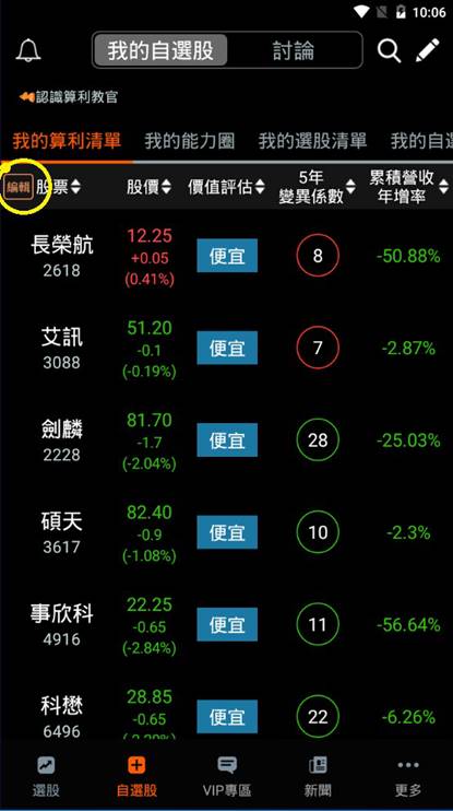 10:06 軟體小編Chasel 自選股有個【編輯】。可自行設定