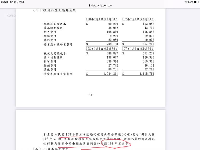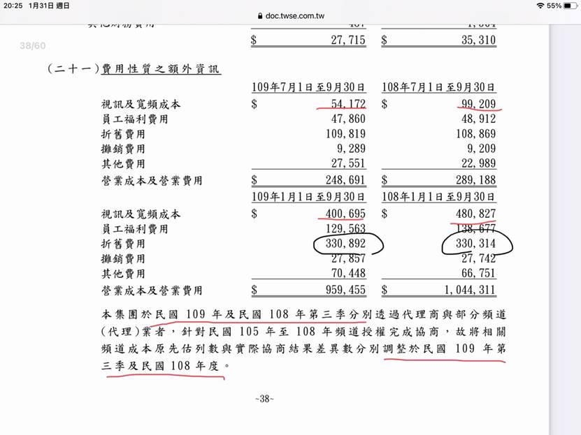 20:39 算利教官一楊禮軒 還要繼續丟錢,所以折舊費用雖然數位機上盒會下來,但是新的投資又會增加折舊